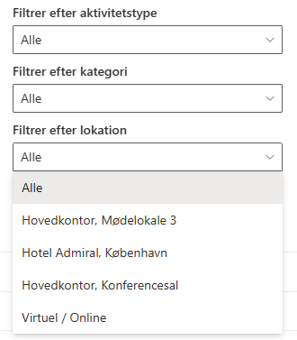 Valgmulighederne for filtrene defineres i *Aktivitetslisten* og kan opdateres løbende.